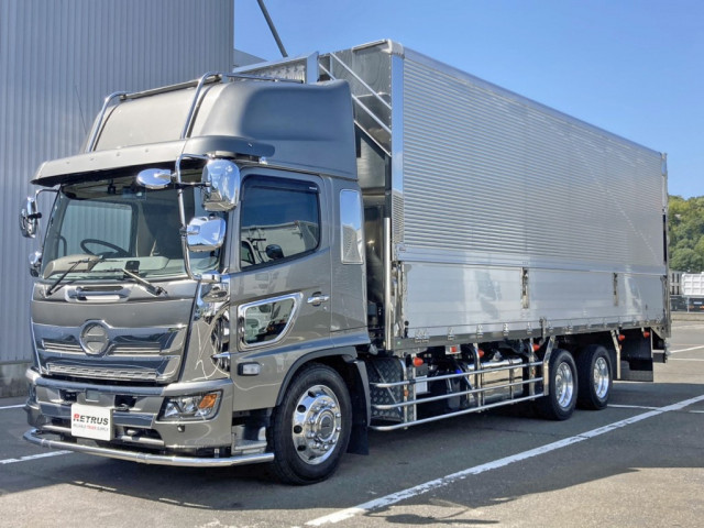 増々トン・ワイド幅・ハイルーフのアルミウイングが入荷いたしました。 ミッションはMT6速・エンジンは260馬力の高馬力仕様です。 荷台内寸は(L=7.47m、W=2.38m、H=2.47m、門高=2.38m)で積載量は10,200㎏とれております。 スタンション穴2対、引き出しフック5対がついております! キャブ周りメッキ仕様、アルミホイール、バイザー、一枚もの泥除け、フロントリップ・プロテクター・ 門口・蝶番・キャッチ・ハンマーロック・丸サイドバンパーはステンレス製とかなり拘った車輛です! 2デフ、高馬力で最大積載量も10t越えの希少な車輌です。是非この機会にお問合せください!