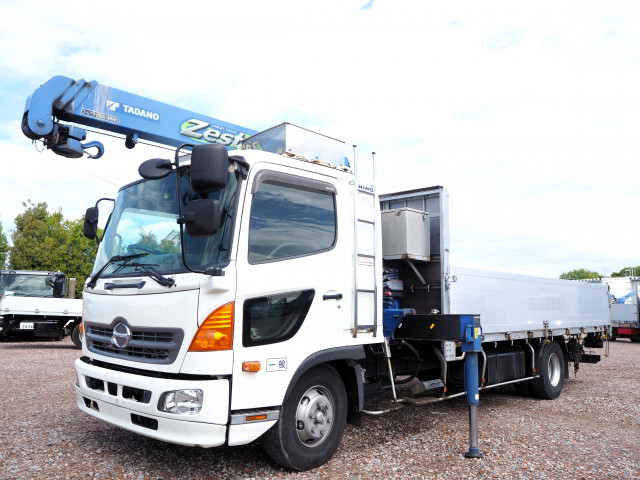★実走行 ★6400cc(ターボ240馬力) ★2人乗り ★ミッション 6速マニュアル ★ベット付き ★積載2250kg ★ワイド幅 ★上物 タダノ製 TM-ZE303 3段クレーン フックイン 同年 ★荷台内寸(約)長さ545cm×幅238cm ★床面:板張り ★落とし込みフック ★坂道発進補助装置 ★リアエアサス ★ETC ★キセノンヘッドライト ★バックモニター