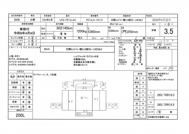 | 最大積載量 | 7,200(kg) |
