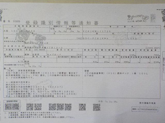 | 車検 | 抹消 |