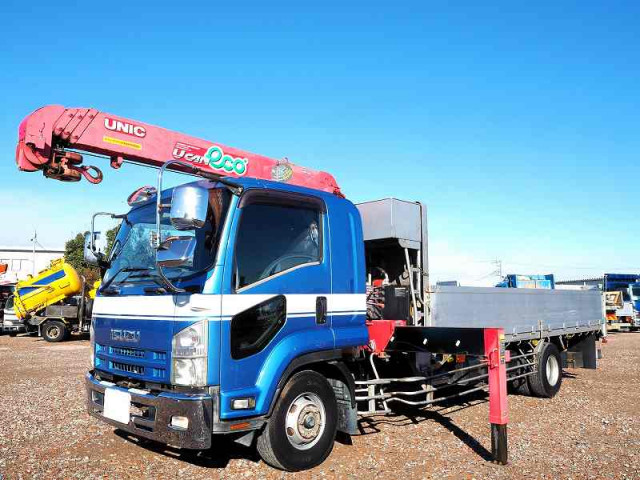 ★増トン!! ★中型11t未満!! ★中型免許対応(8t限定を除く) ★リーフサス ★実走行 ★6400cc(ターボ224馬力) ★ベッド付き ★積載4900kg(抹消前) ★セミワイド ★平ボディ ★上物 古河ユニック製 URU374RKK 4段クレーン フックイン 角足 差し違いアウトリガー 2.93t吊 ラジコン付(2006年7月製:同年)
