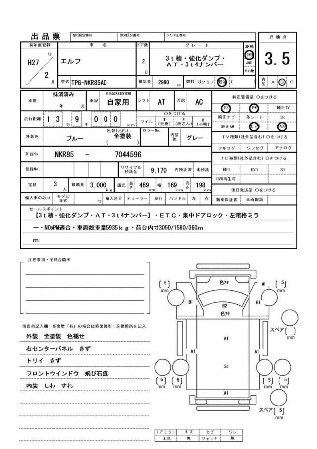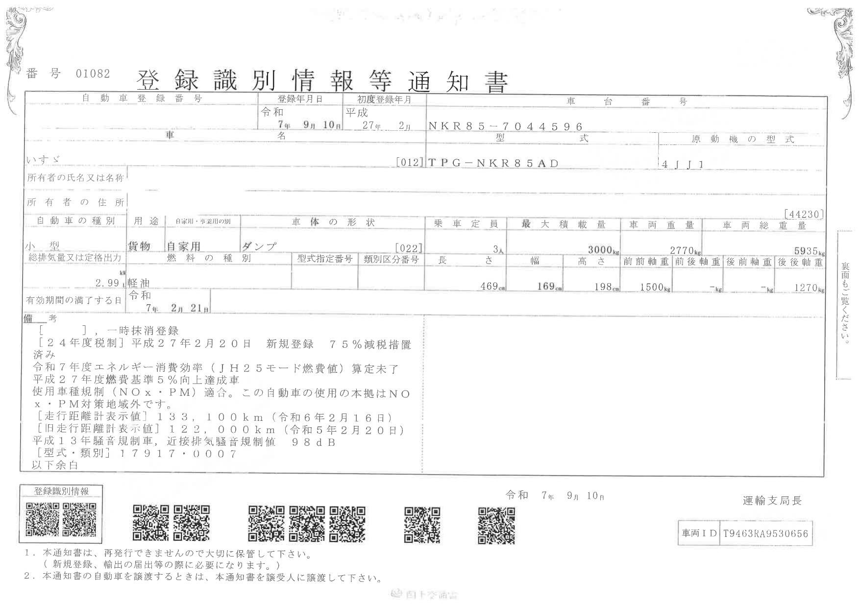 【3t積・強化ダンプ・AT・3t4ナンバー】・ETC・集中ドアロック・左電格ミラー・NOxPM適合・車両総重量5935kg