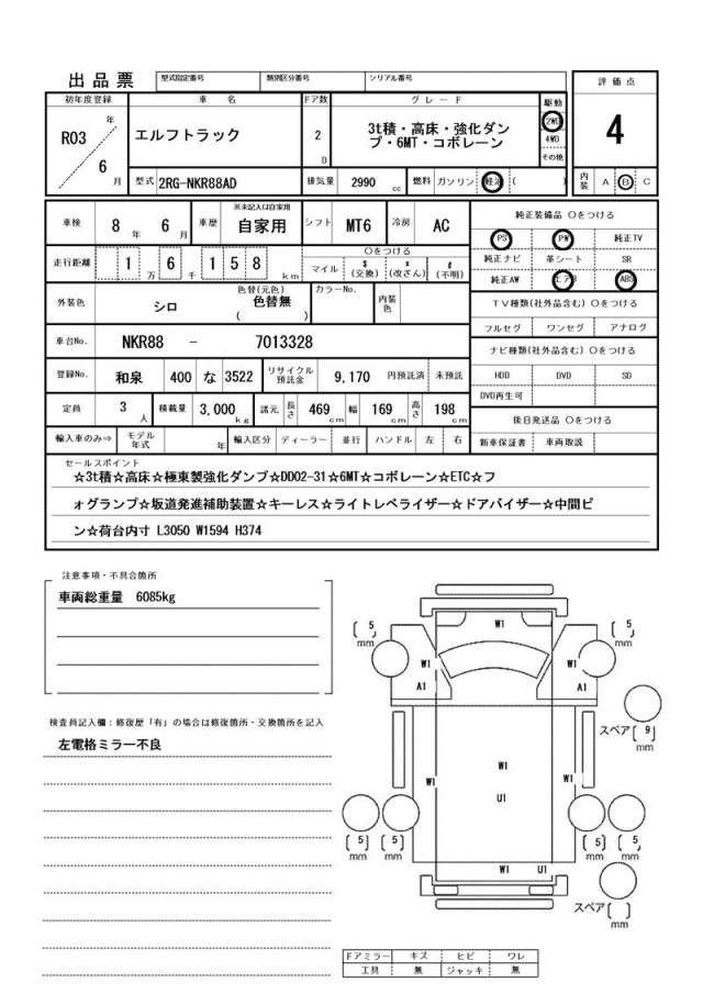 ☆3t積☆高床☆極東製強化ダンプ☆DD02-31☆6MT☆コボレーン☆ETC☆フォグランプ☆坂道発進補助装置☆キーレス☆ライトレベライザー☆ドアバイザー☆中間ピン☆荷台内寸 L3050 W1594 H374