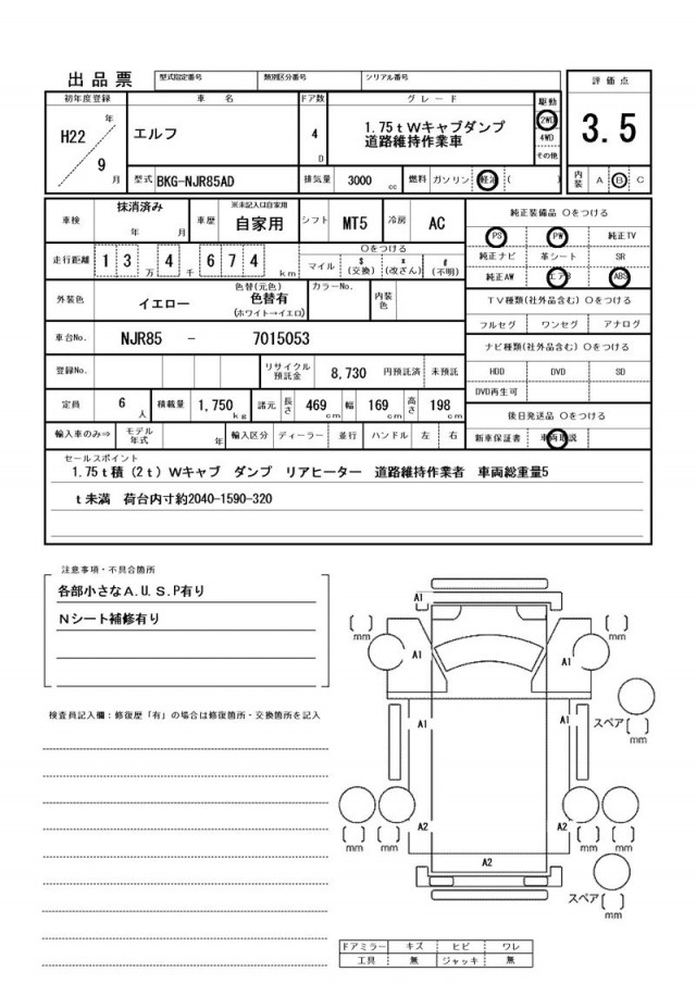 1.75t積 Wキャブ ダンプ リアヒーター 道路維持作業車 車両総重量5t未満