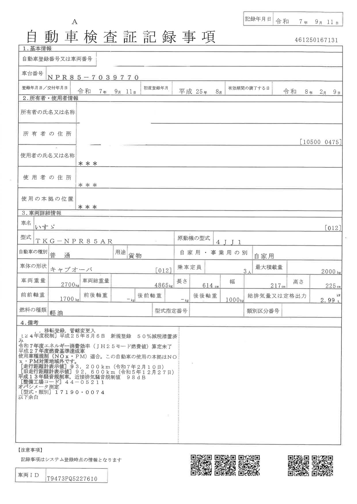 | 走行距離 | 100,000(km) |