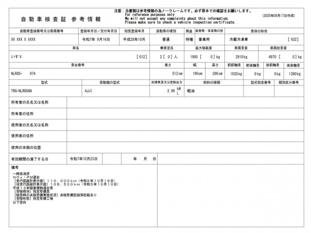 | 車検 | 抹消 |