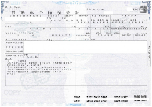車検 | 予備検 (2025年12月) |