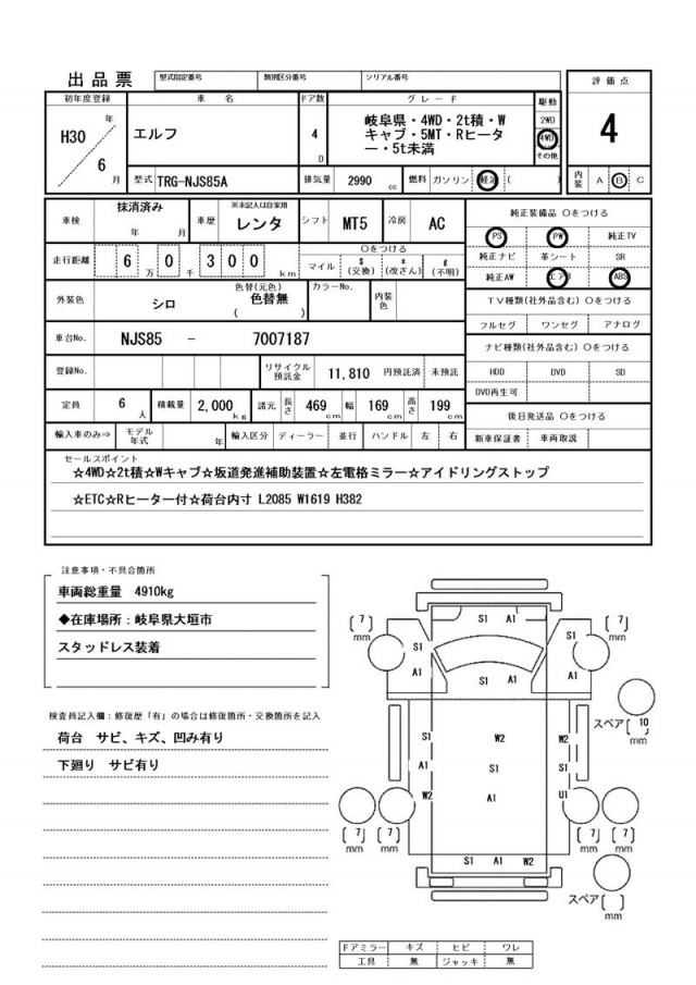スタッドレス装着・荷台 サビ、キズ、凹み有り・下廻り サビ有り