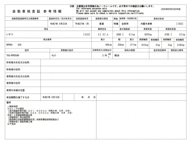 車検 | 抹消 |