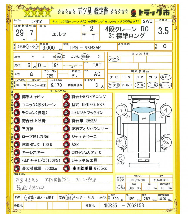 ★ユニック4段クレーン★標準キャビン★荷台セミワイドロング★2.6t吊り★フックイン★ラジコン(後送)★荷台床板張り★荷台仕上げ済★左右アオリバランサー★ロープ通し穴3対★ジャッキベース★キーレス★ETC★ターボ★ジャッキ&工具★