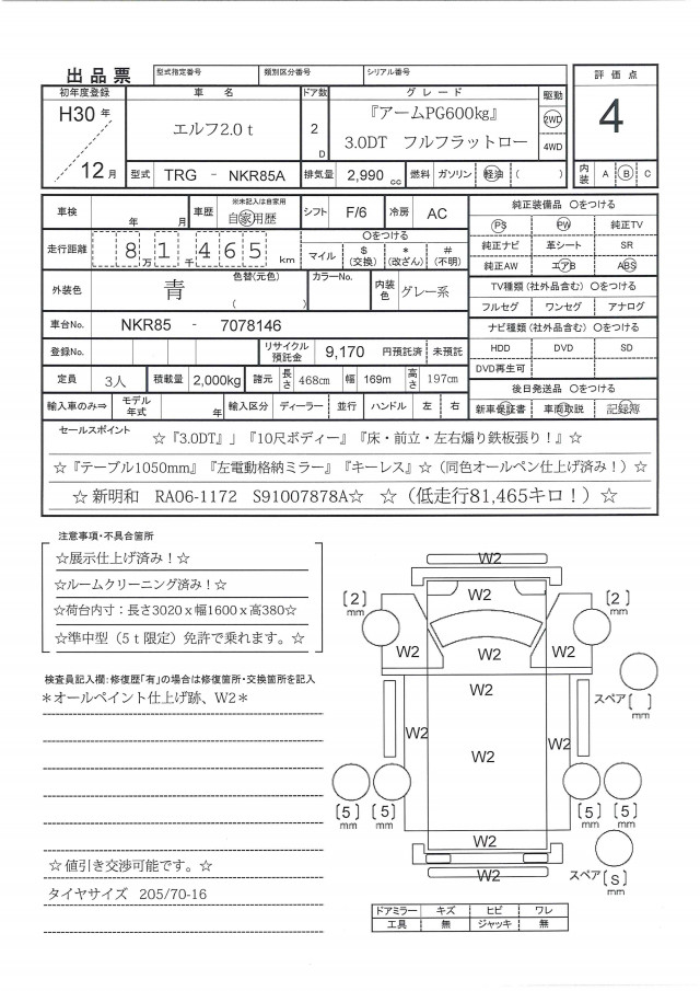 ☆H30年エルフ2.0tFFL『アームPG600㎏/テーブル1050kg』木製荷台(床・前立て・左右煽り鉄板張り!)10尺ボディー☆(低走行81,465キロ!)☆キーレス&セキュリティー☆左電動格納ミラー☆準中型(5t限定)免許で乗れます。☆