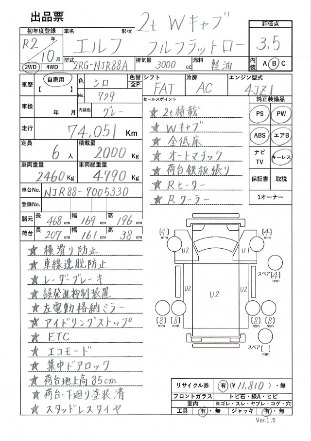 価格には保険料、税金(車両本体の消費税除)、リサイクル料金、リサイクル預託金相当額、登録、納車、陸送等に伴う費用等は含まれておりません。