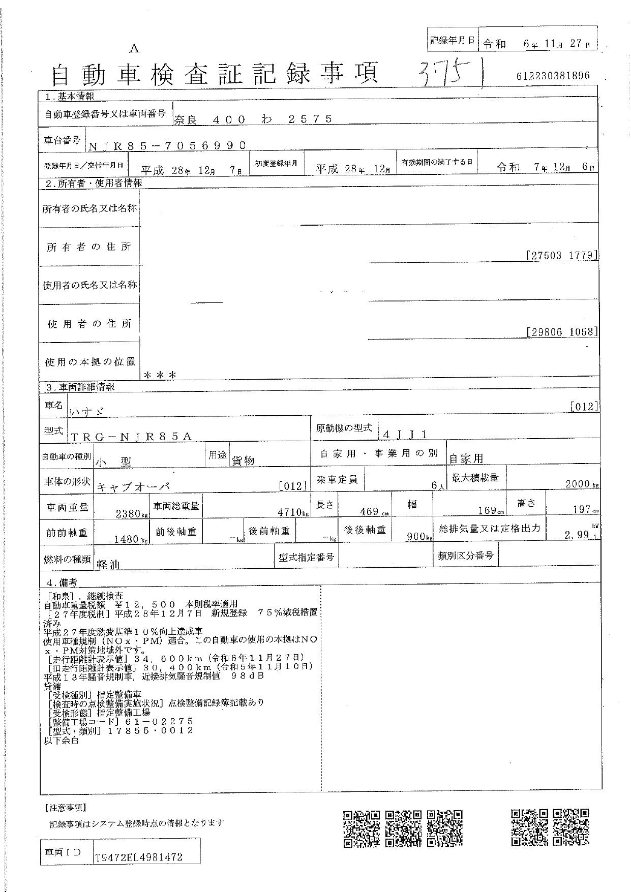 キャビン・荷台 キズ・鳥居加工・下廻り 一部S