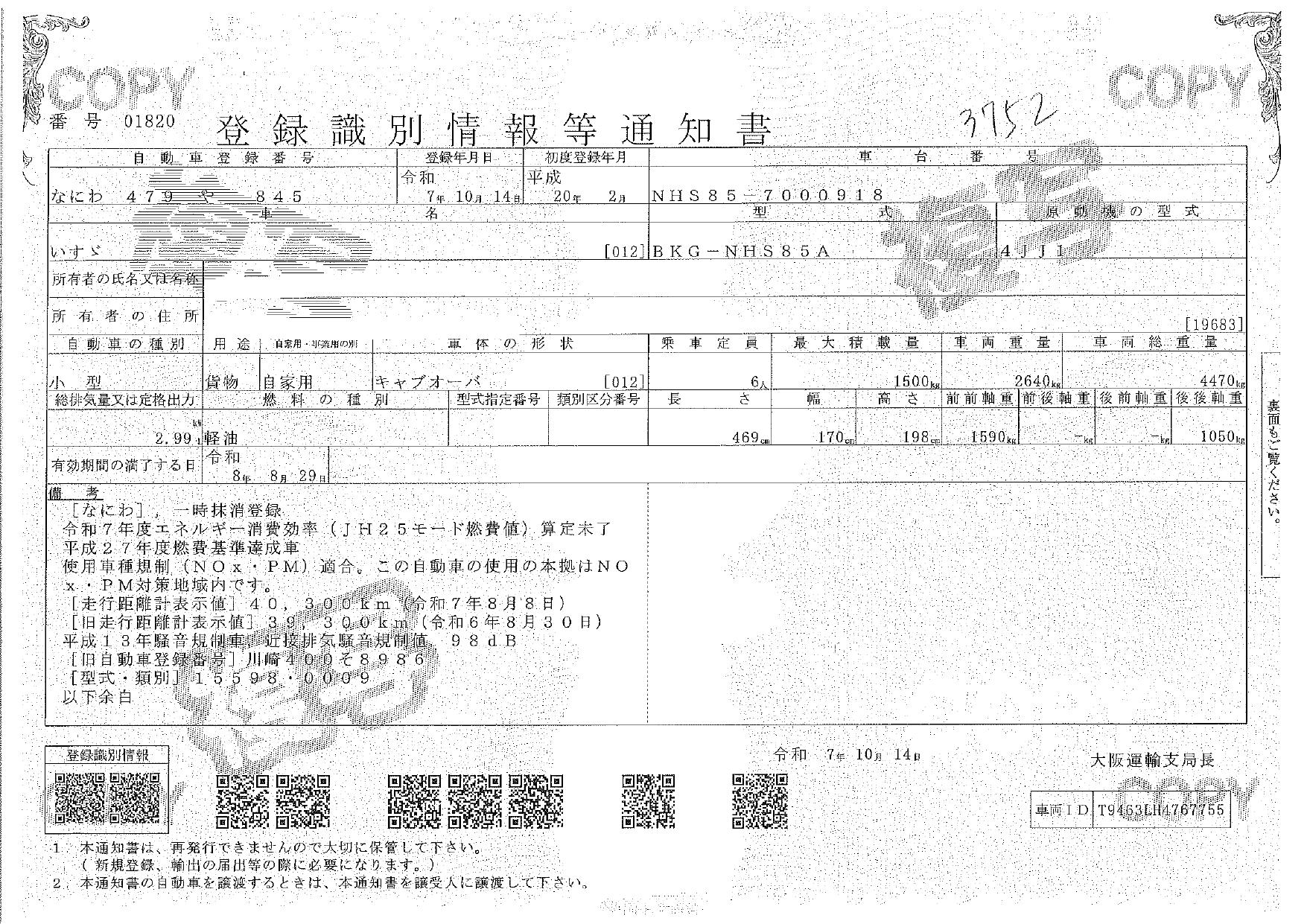 | 車検 | 抹消 |