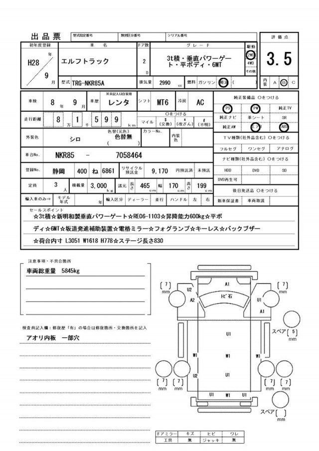 ☆3t積☆新明和製垂直パワーゲート☆RE06-1103☆昇降能力600kg☆平ボディ☆6MT☆坂道発進補助装置☆電格ミラー☆フォグランプ☆キーレス☆バックブザー☆荷台内寸 L3051 W1618 H778☆ステージ長さ830