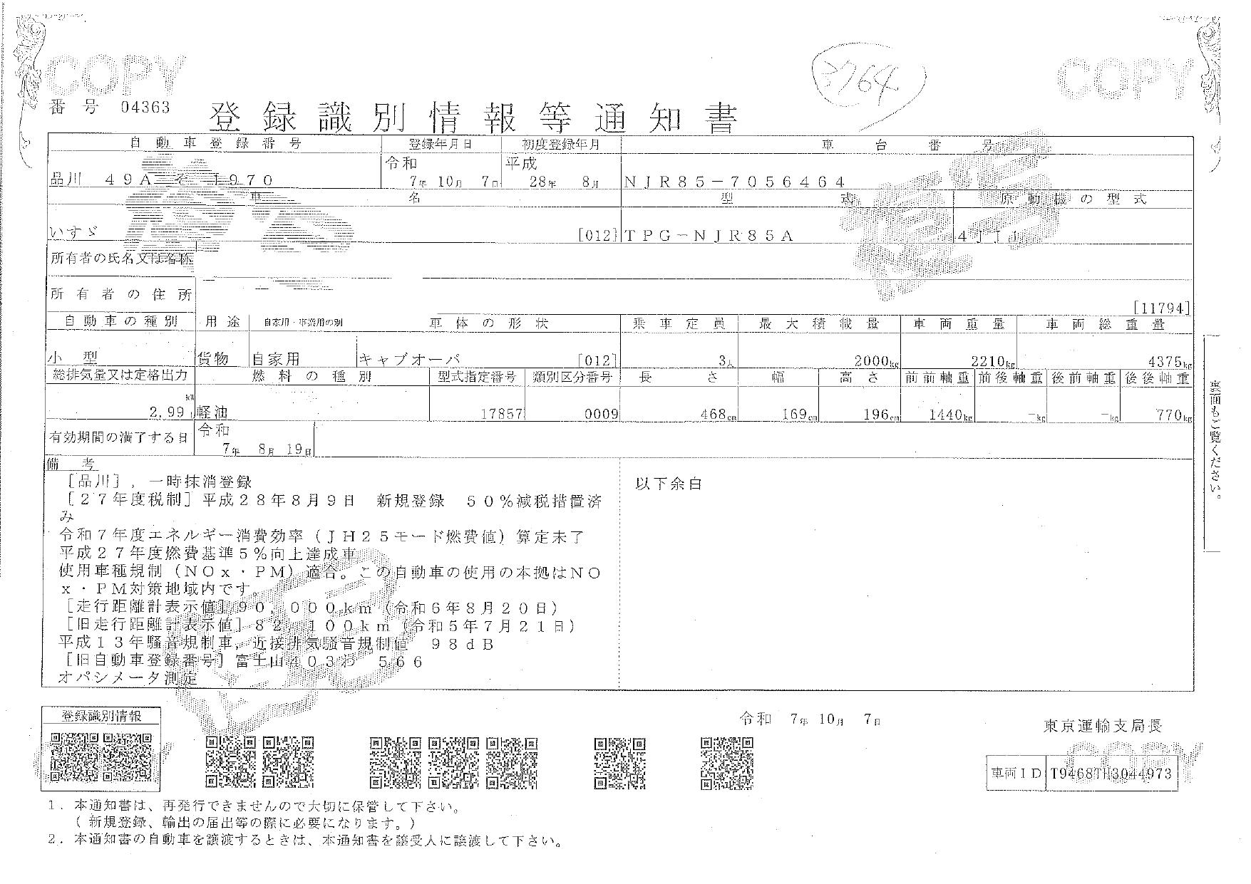 荷台・キャビン キズ、凹み有り・下廻り 一部S