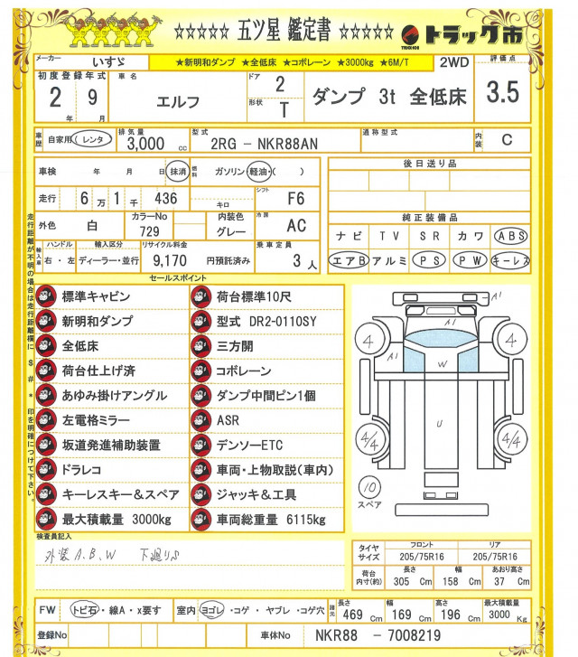 3トンダンプ☆全低床☆コボレーン付き☆標準10尺☆3方開☆荷台仕上げ済☆あゆみかけアングル☆中間ピン×1☆ASR☆坂道発進補助装置☆左電格ミラー☆ETC☆ドライブレコーダー☆キーレス☆車両・上物取説☆6MT