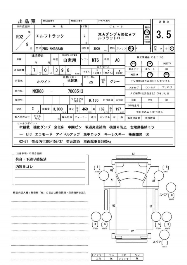 荷台・下廻り塗装済 内装ヨゴレ