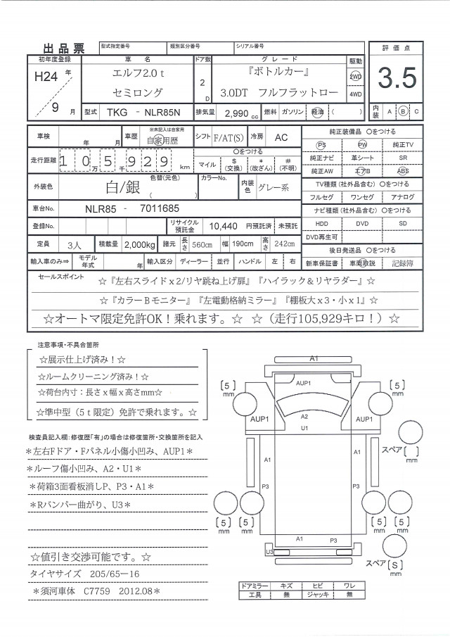 ☆H24年エルフ2.0t『セミロング』FFL『ボトルカー』左右スライドⅹ2/リヤ跳ね上げ扉/ハイラック&リヤラダー☆(走行105,929キロ!)『カラーBモニター』『左電動格納ミラー』☆準中型(5t限定)免許で乗れます。☆オートマ限定免許OK!乗れます。☆遠方の方でも安心!ルームクリーニング済み!☆展示仕上げ済み!☆