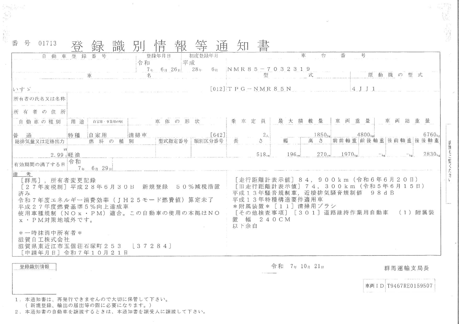 | 車検 | 抹消 |