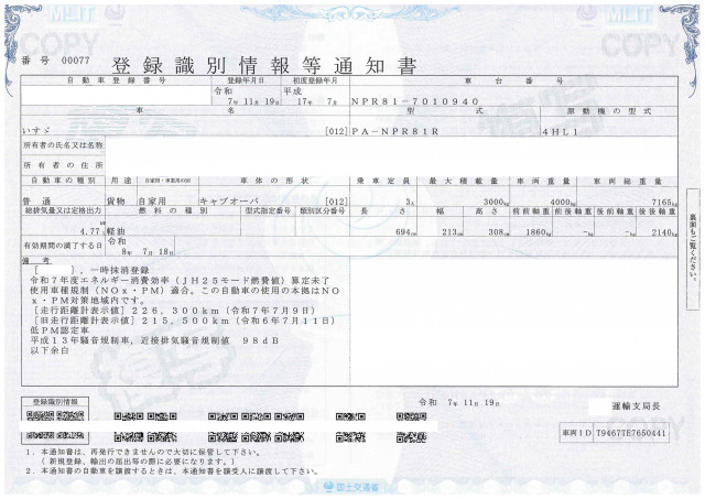 | 車検 | 抹消 |