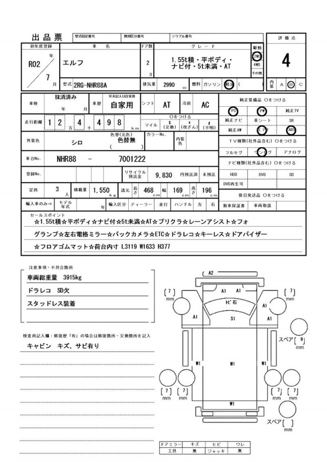 ドラレコ SD欠・スタッドレス装着・キャビン キズ、サビ有り