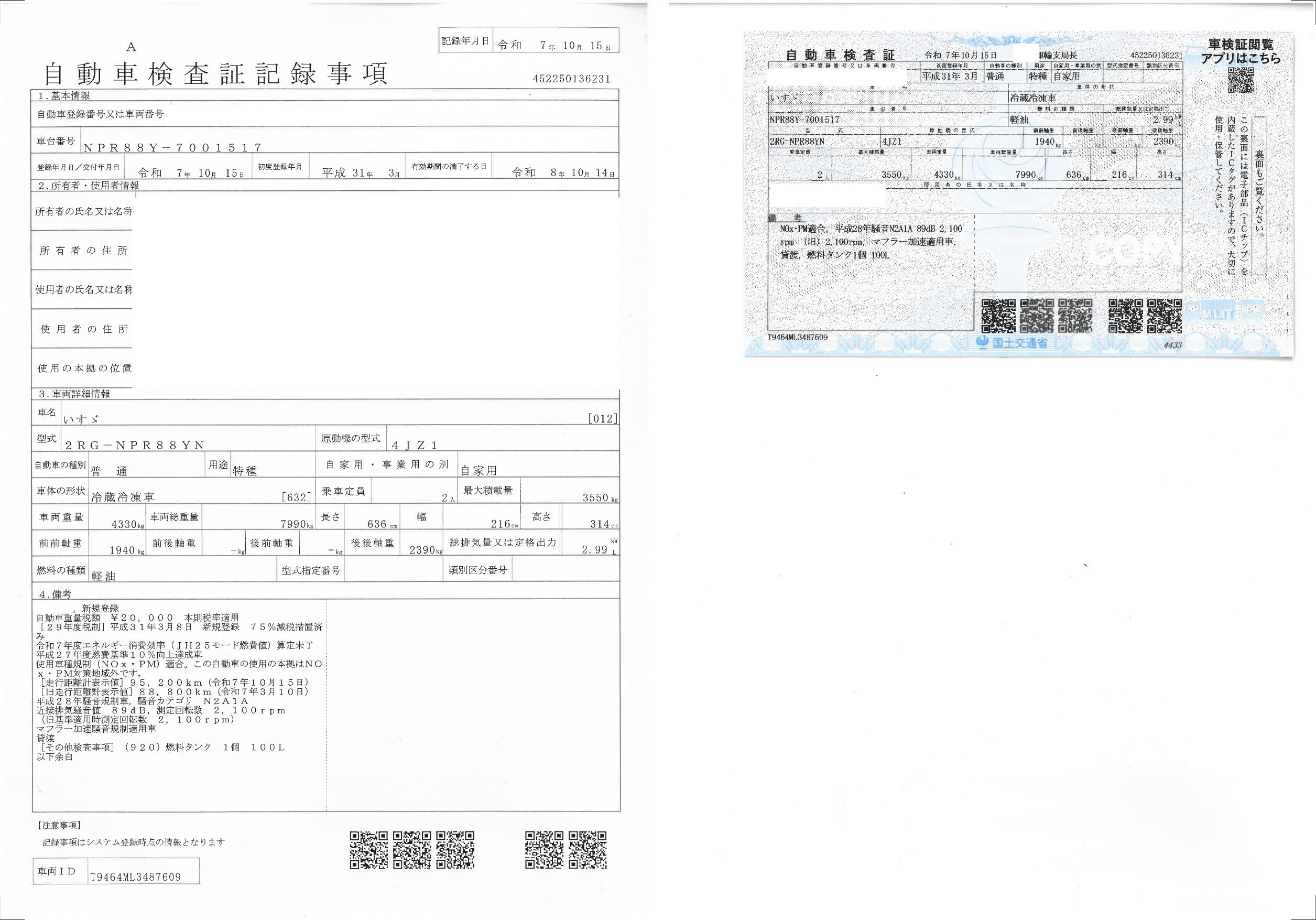 ※抹消車両は、登録時最大積載量が減トンされる可能性が御座います。