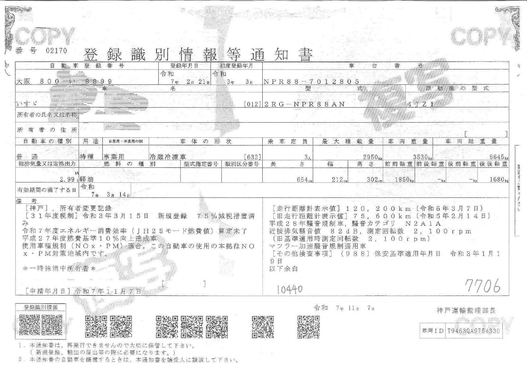 | 車検 | 抹消 |