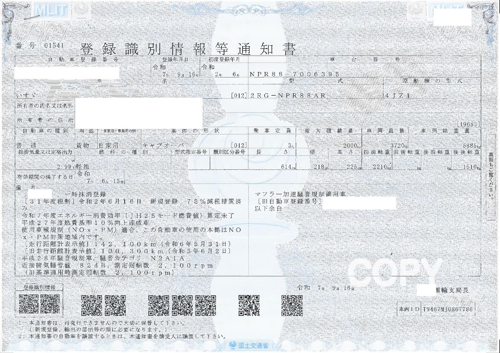 ※抹消車両は、登録時最大積載量が減トンされる可能性が御座います。