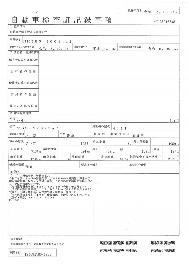 型 式TKG-NJR85AD