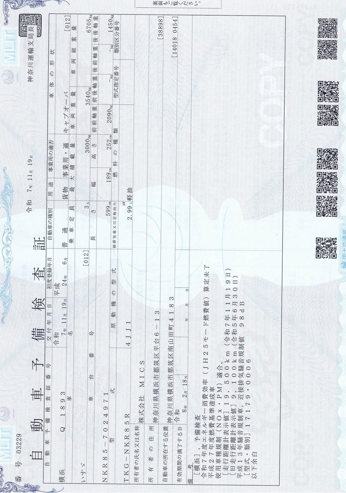 | 車検 | 予備検 (2025年11月) |