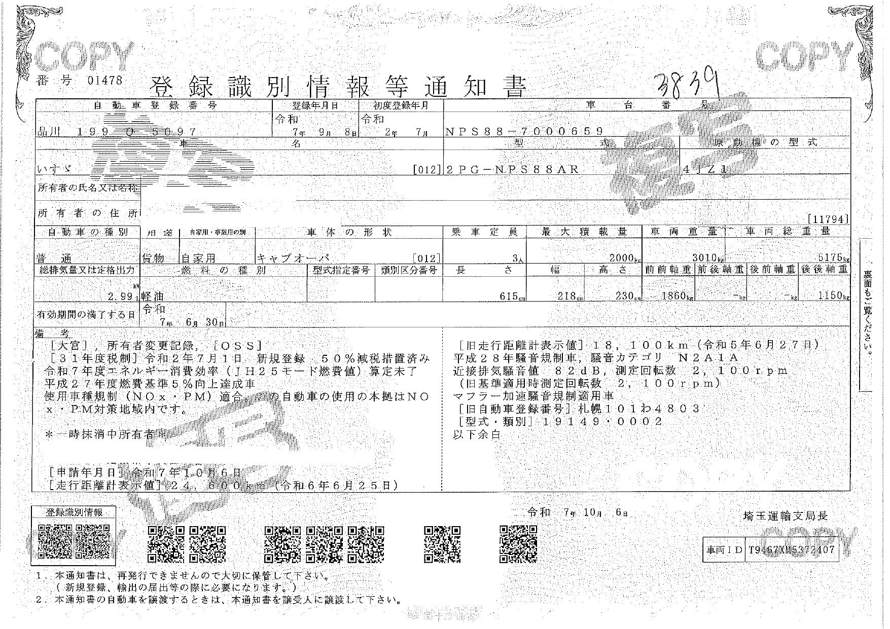 キャビン・荷台 キズ、サビ、有り・下廻りサビ(ジーバート処理済)・スペアタイヤ欠・左アオリ下部 曲がり