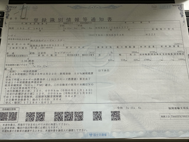 | 車検 | 抹消 |