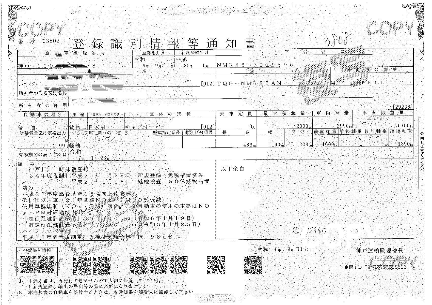 | 車検 | 抹消 |