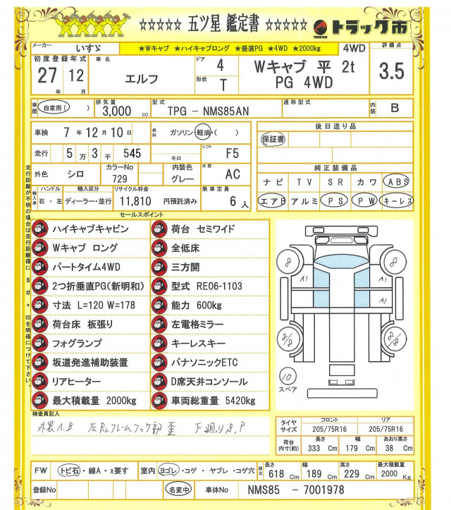 外装AB 左Rフレームフック部歪 下廻りSP FW飛び石 室内汚れ