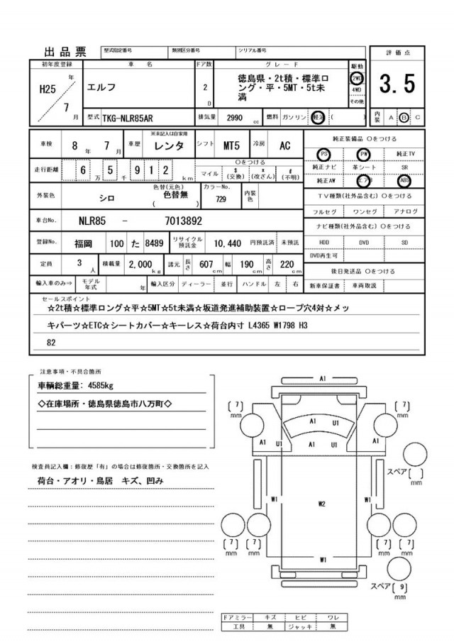 ☆2t積☆標準ロング☆平☆5MT☆5t未満☆坂道発進補助装置☆ロープ穴4対☆メッキパーツ☆ETC☆シートカバー☆キーレス☆荷台内寸 L4365 W1798 H382