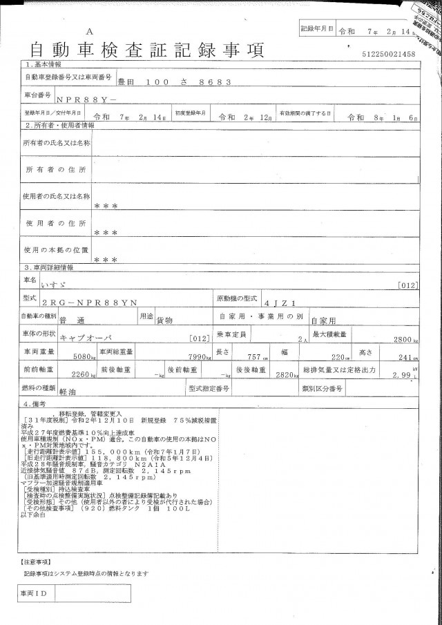 | 走行距離 | 155,130(km) |