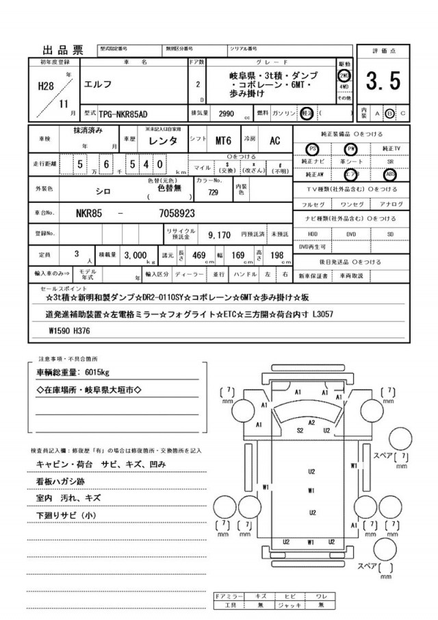 ☆3t積☆新明和製ダンプ☆DR2-0110SY☆コボレーン☆6MT☆歩み掛け☆坂道発進補助装置☆左電格ミラー☆フォグライト☆ETC☆三方開☆荷台内寸 L3057 W1590 H376