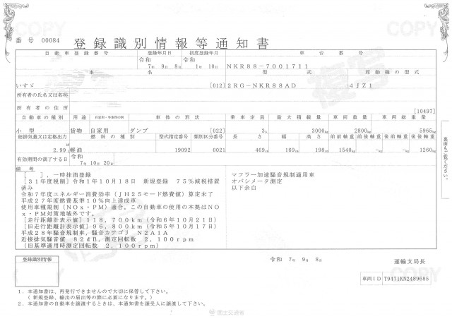 | 車検 | 抹消 |