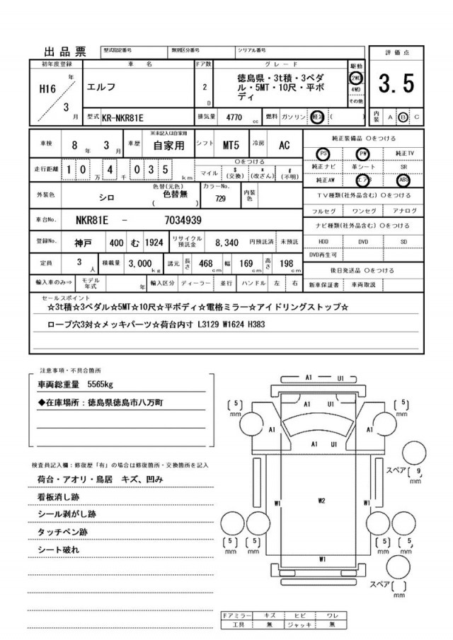 荷台・アオリ・鳥居 キズ、凹み・看板消し跡・シール剥がし跡・タッチペン跡・シート破れ