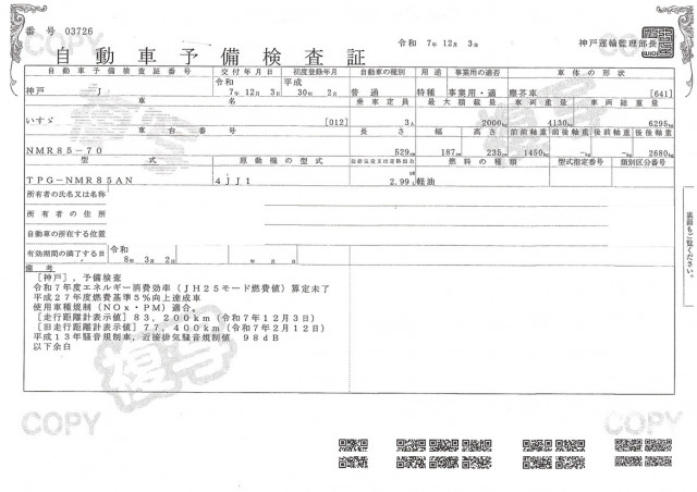 | NOX適合 | 適合 |