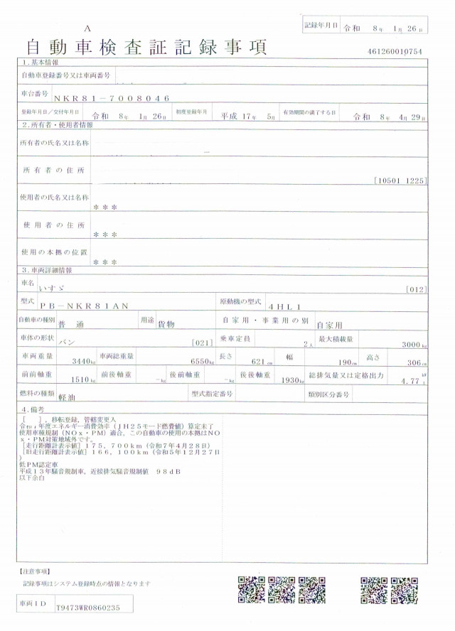 | 型式 | PB-NKR81AN |