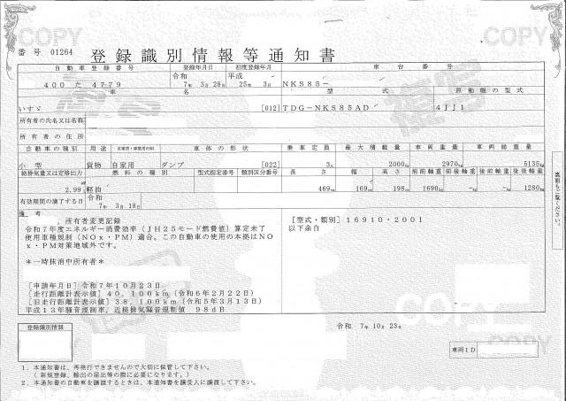 | 車検 | 抹消 |