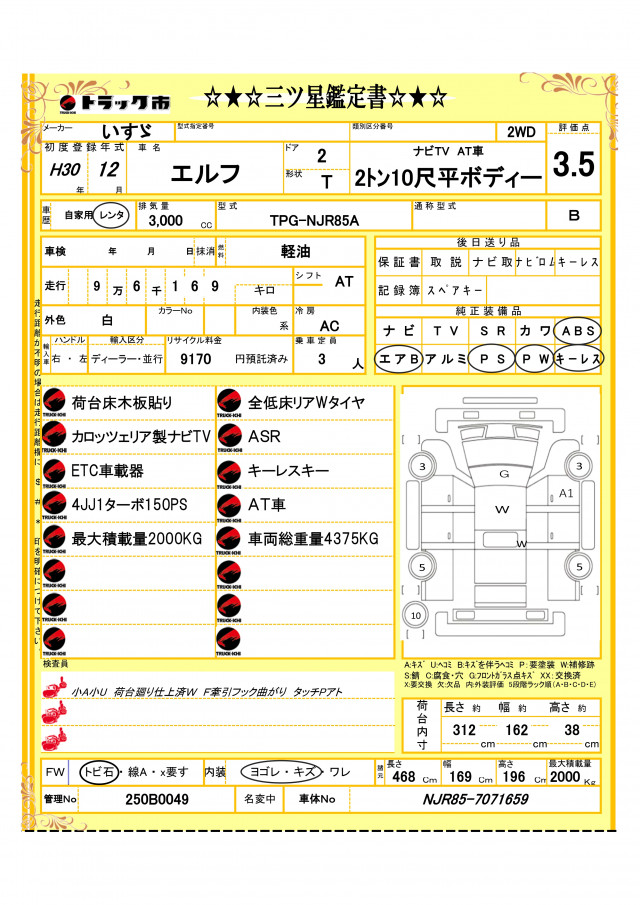 | 最大積載量 | 2,000(kg) |
