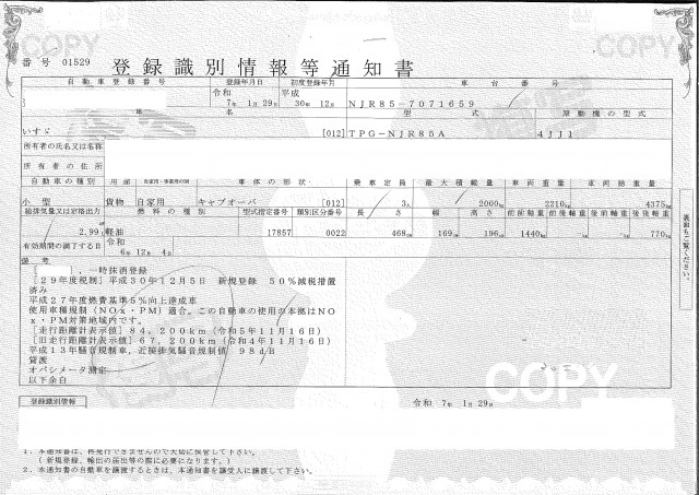 | 車検 | 抹消 |