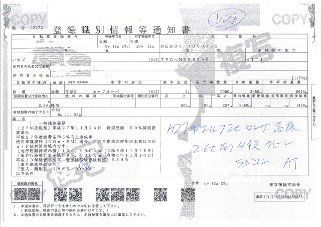 | 車検 | 抹消 |