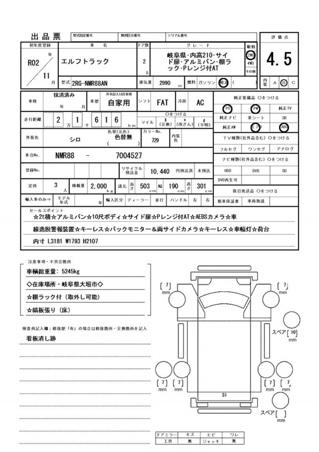| 車両総重量 | 5,245kg |