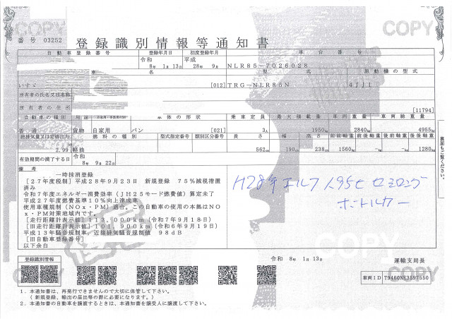 | 車検 | 抹消 |