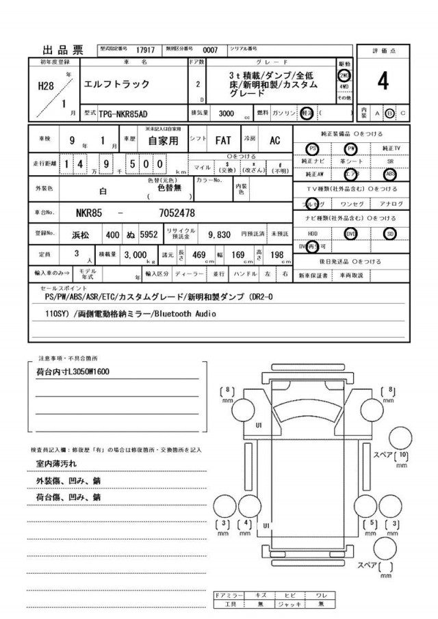 室内薄汚れ/外装傷、凹み、錆/荷台傷、凹み、錆