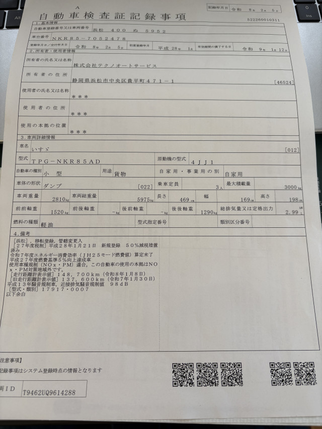 | 走行距離 | 149,500(km) |